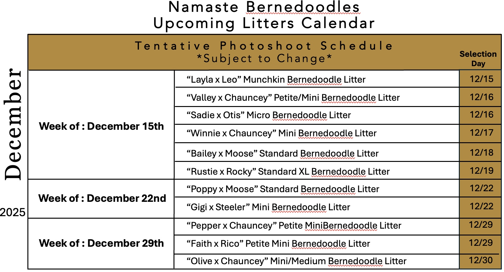 Selection Date: December 11th